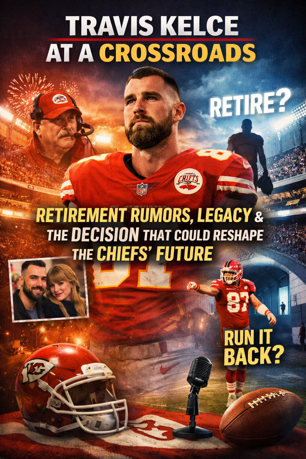 🔥 Topic: Travis Kelce at a Crossroads — Retirement Rumors, Legacy, and the Decision That Could Reshape the Chiefs’ Future Would you like a shorter, more viral headline or a longer, dramatic feature-style topic as well?