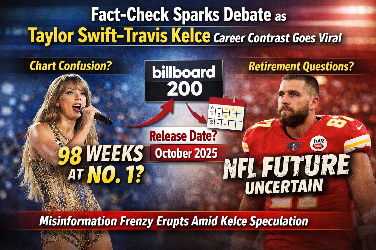 Confusion over Billboard statistics fuels scrutiny after claims about Taylor Swift’s chart dominance clash with release timelines, highlighting how misinformation spread amid intense focus on Travis Kelce’s uncertain NFL future.