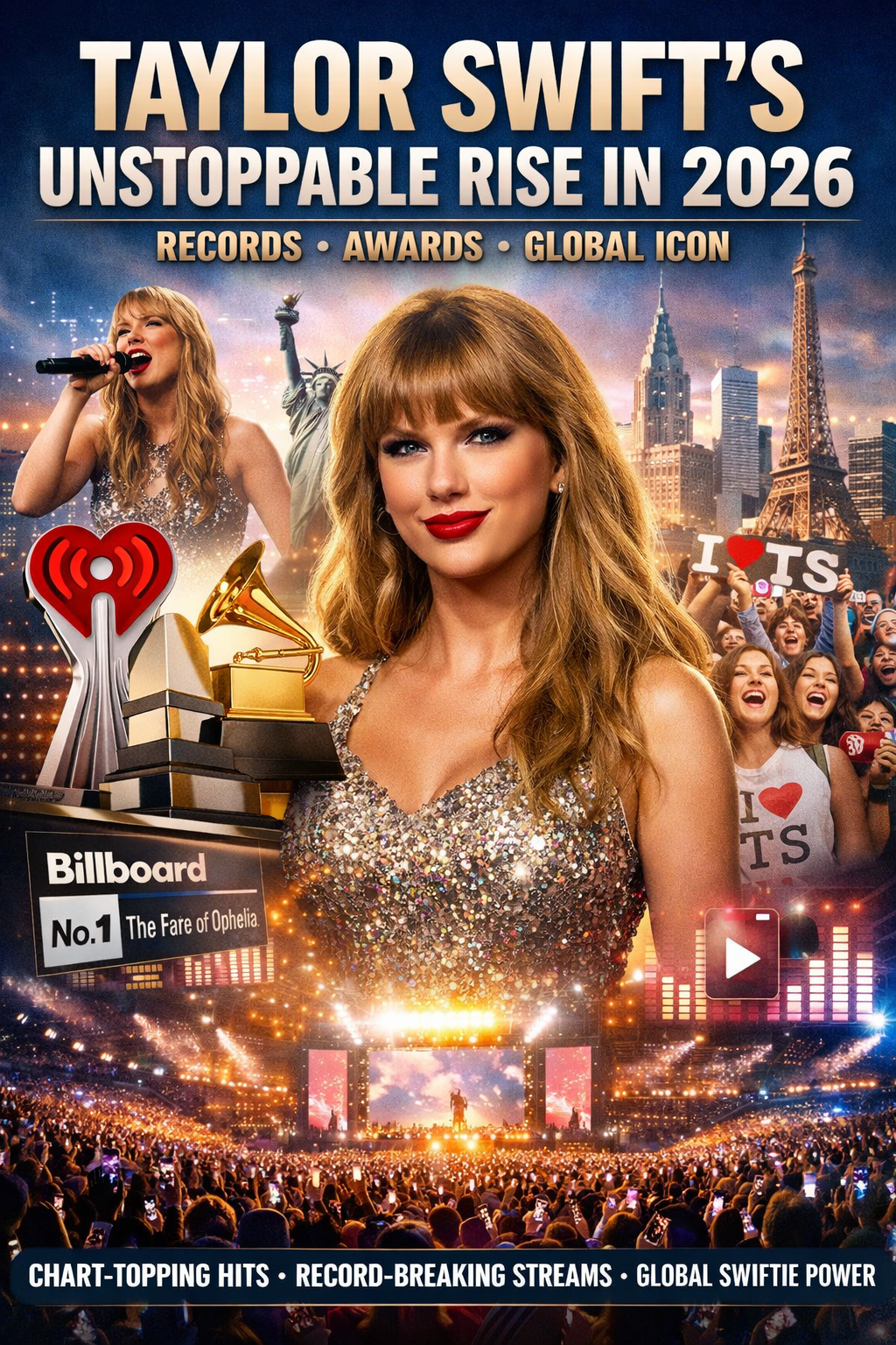 Taylor Swift’s unstoppable rise in 2026 highlights her record-breaking awards dominance, cultural influence, chart success, and unmatched global fan power, proving she remains the defining artist of her generation.